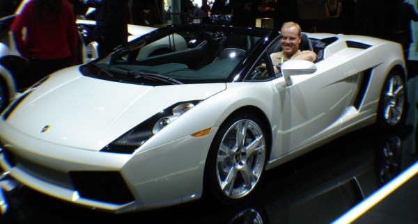 Me in a new Gallardo Spyder, at the IAA Motor Show in Frankfurt 2005.